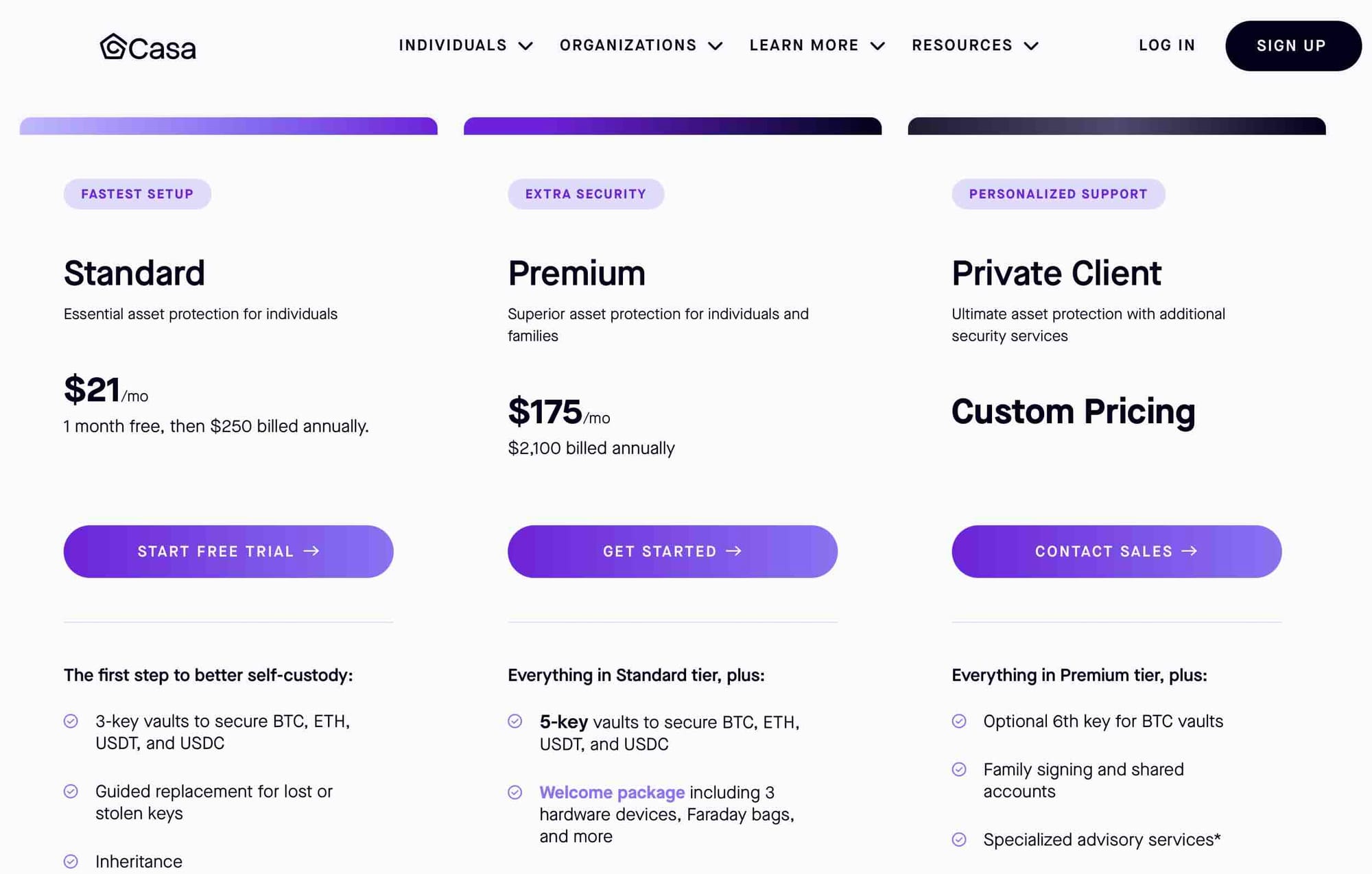 Casa is a premium Bitcoin security solution founded in 2018 that specializes in multisignature (multisig) wallet technology. It provides self-custody storage for Bitcoin and select cryptocurrencies with an emphasis on security, ease of use, and white-glove customer support.