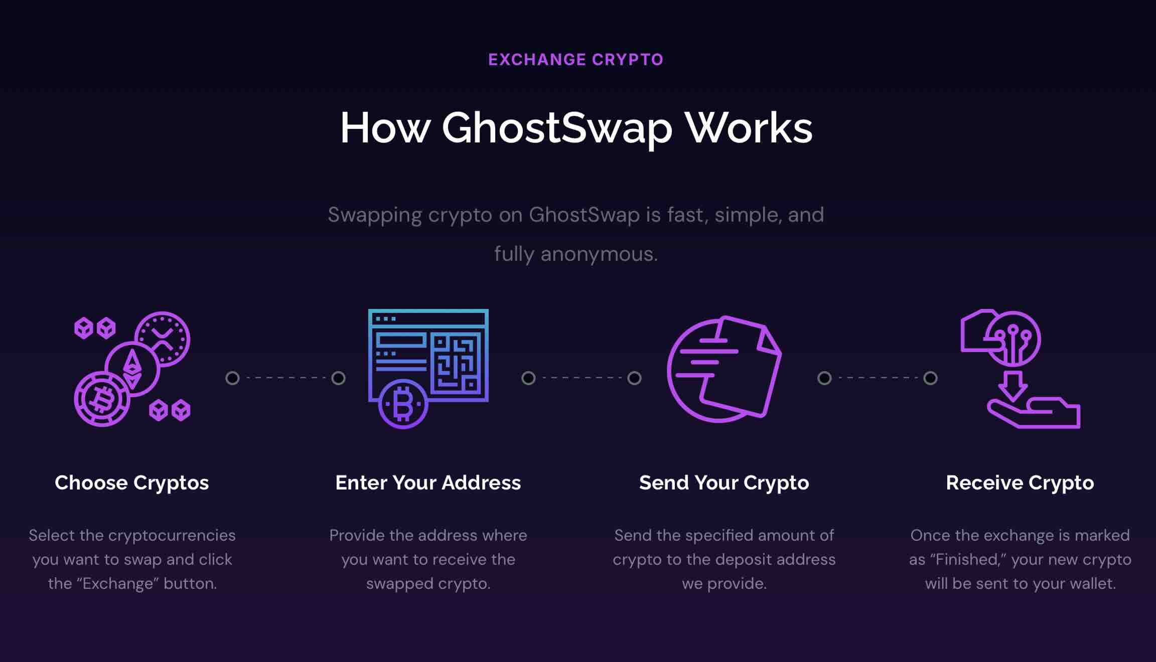 GhostSwap's interface is clean and easy to understand, even for beginners. No complex menus, no hidden features. You immediately see the exchange rate, included fees, and the amount you'll receive.