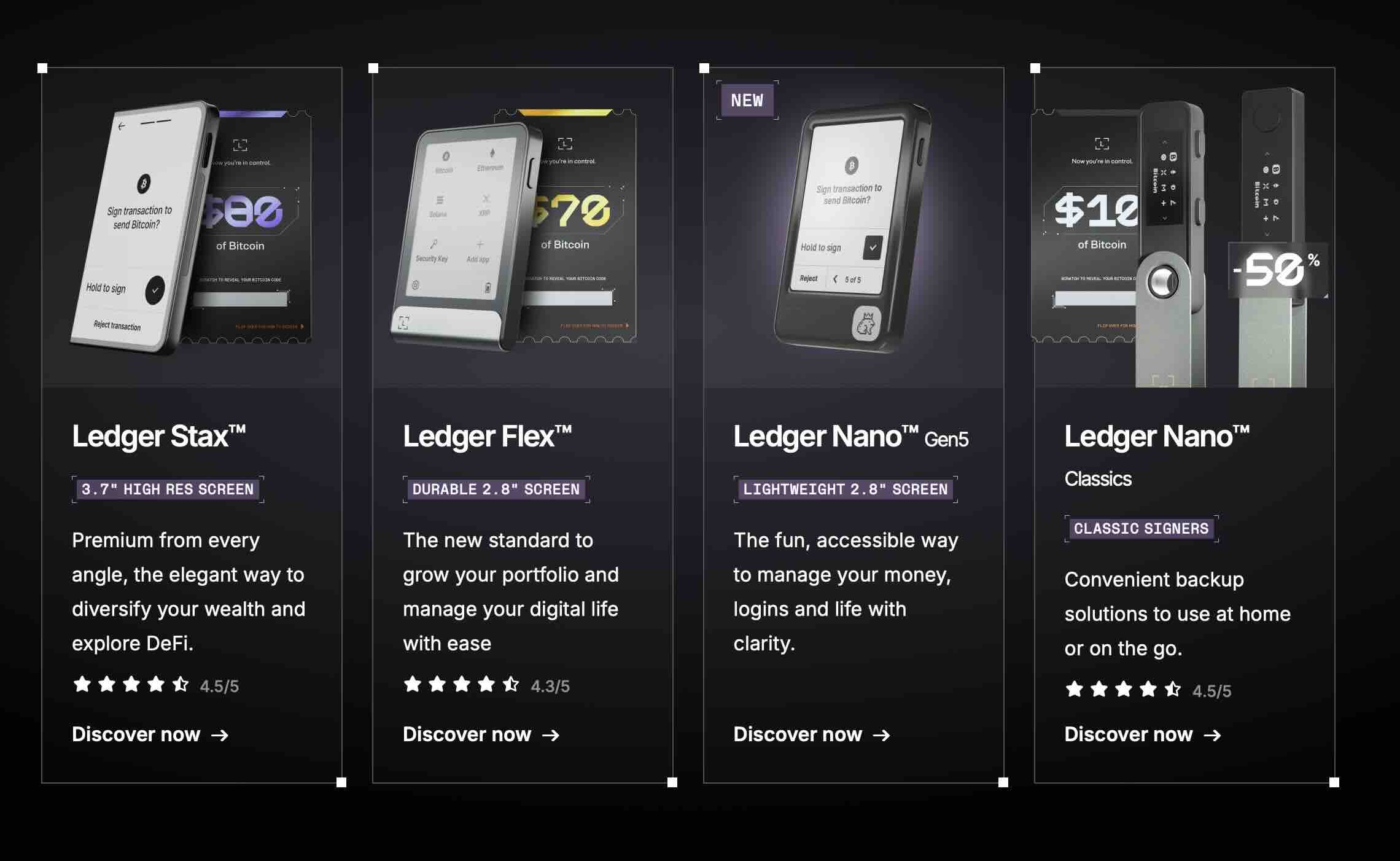 Ledger has evolved from offering just one device to a complete range of products. Let's break down what they offer: