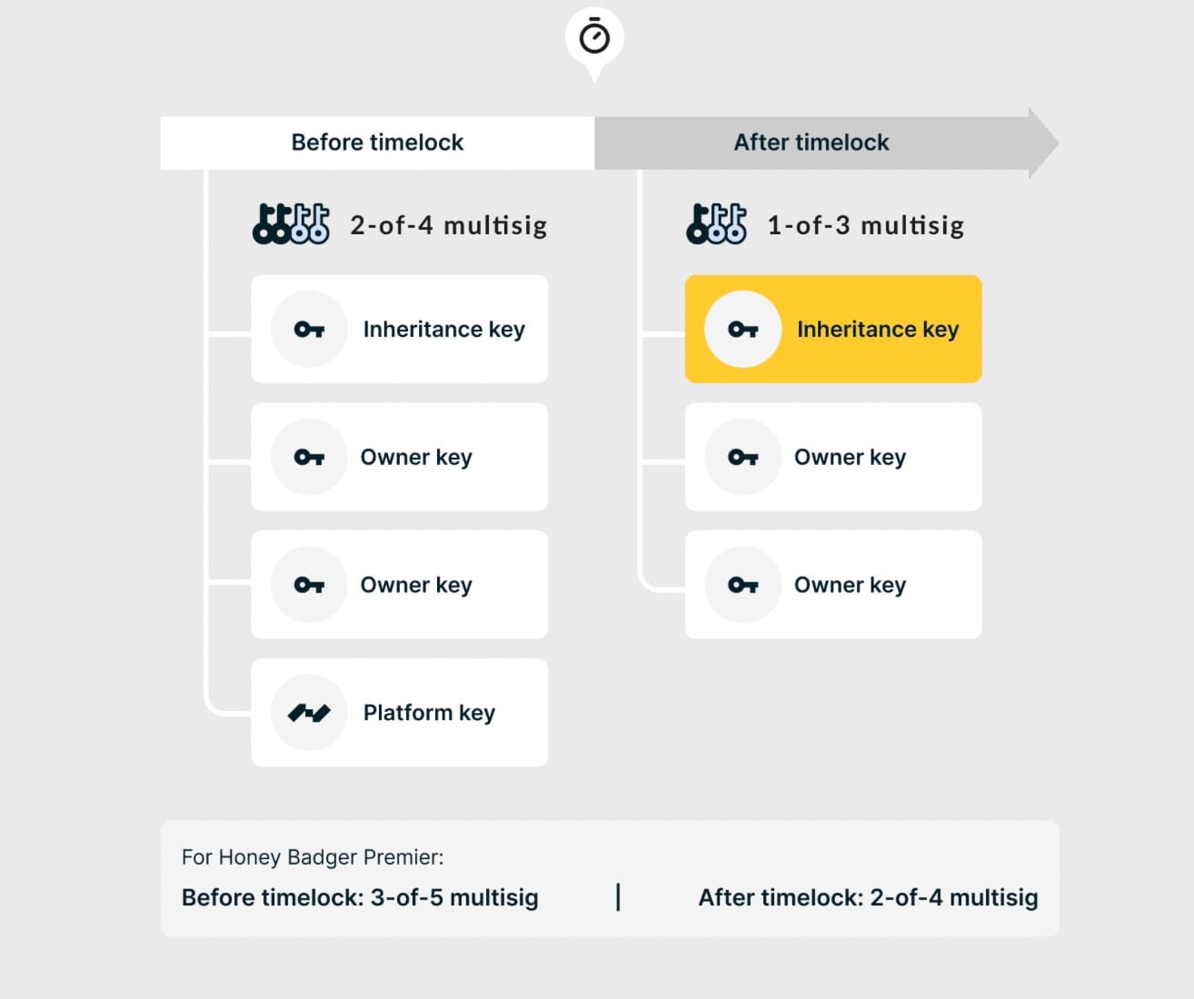 ➔ Timelock dependency – Currently, the timelock in Honey Badger is enforced off-chain by the Nunchuk platform rather than through Bitcoin's native scripting. If Nunchuk disappears, there's a recovery mechanism, but on-chain timelocks would be more trustless.