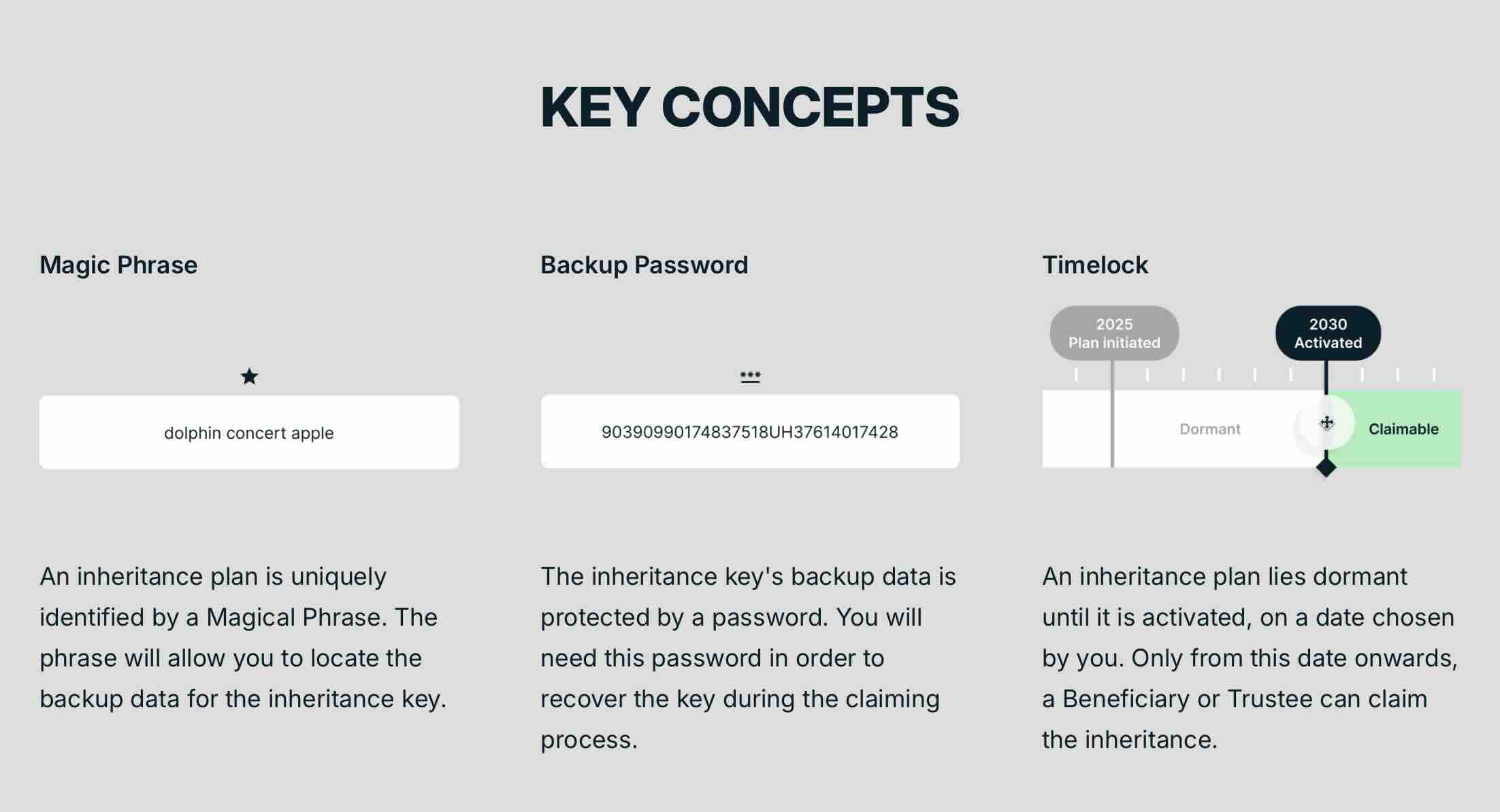 ➔ Lost secrets risk – If beneficiaries lose both the Magic Phrase and Backup Password, the inheritance becomes inaccessible. There's no customer support backdoor.