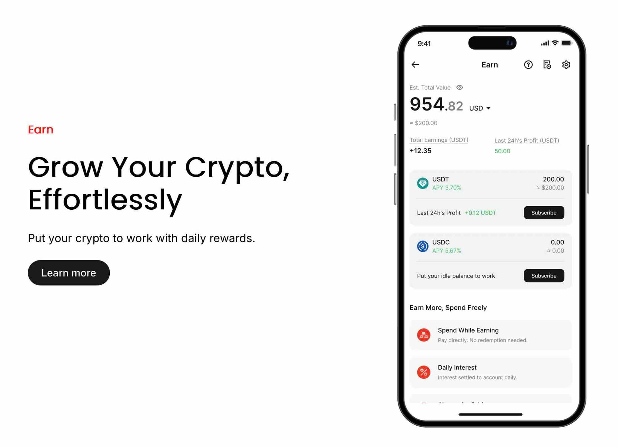 The yield is automatically calculated and deposited into your account daily. You don't need to lock up your funds or commit to any minimum holding period—your crypto earns passively while sitting in your RedotPay wallet.